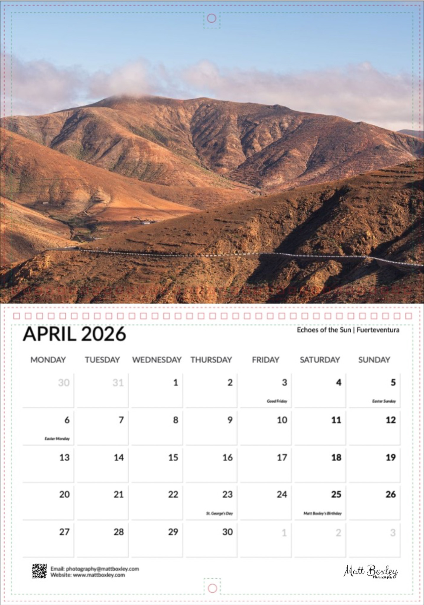 - A4 Calendar page with large boxes for each day. This allows plenty of space for noting down those important events.